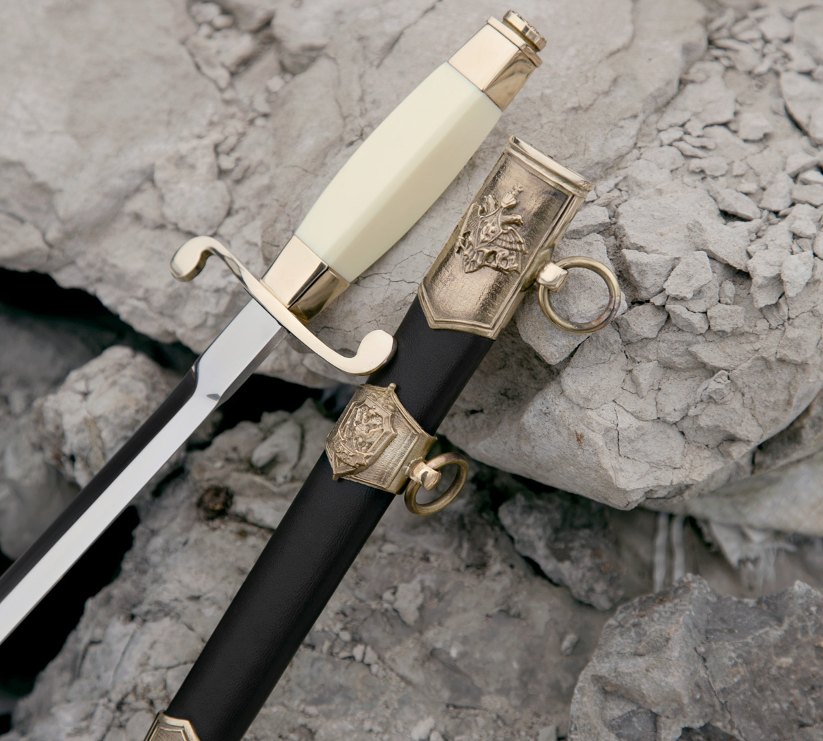 Кортик офицерский ФСБ из стали 95Х18 в деревянных ножнах, рукоять - пластик, литье - латунь. Сувенирная продукция - выпускается без закалки и заточки